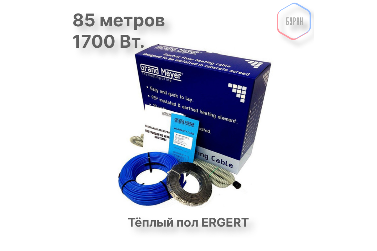 Нагревательный кабель Grand Meyer THC20-85 (85 м) – это современное решение для обустройства системы электрического теплого пола под плитку, керамогранит и другие напольные покрытия. Он обеспечивает равномерный прогрев поверхности, создавая комфорт в ванной, кухне, коридоре или на балконе.