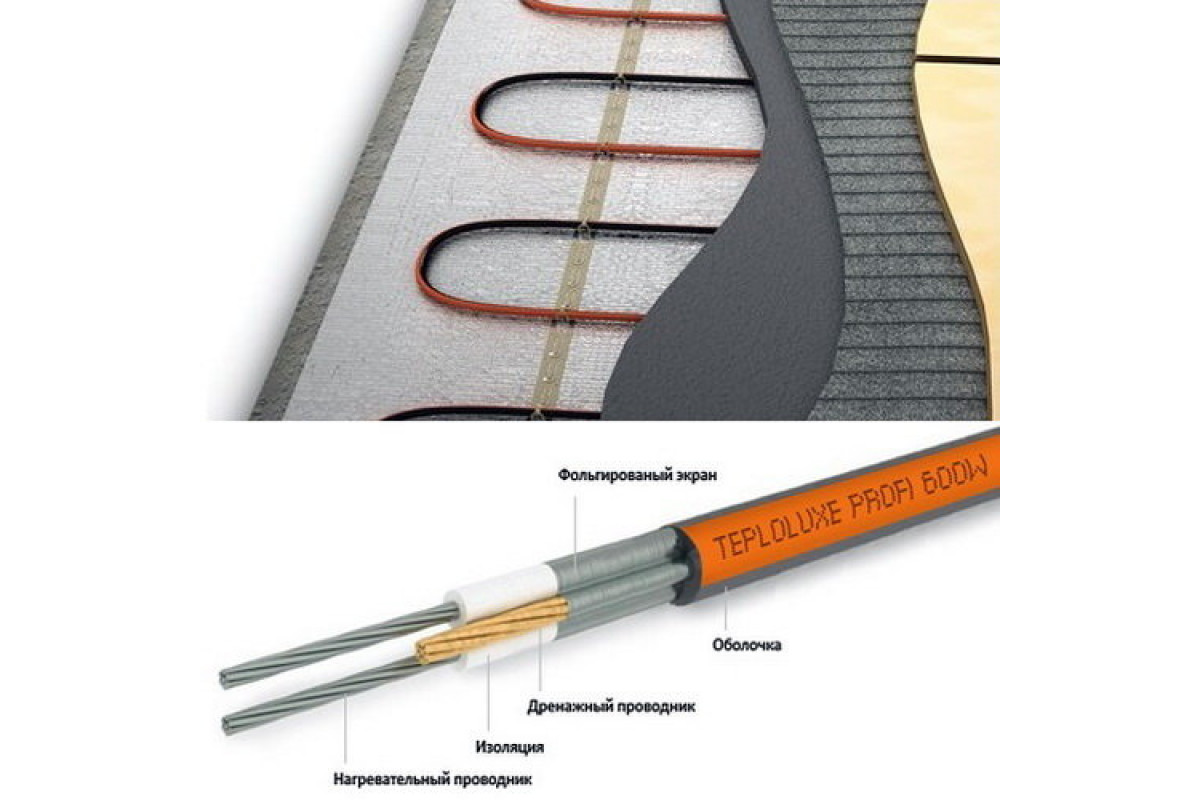 • Монтаж под плитку: кабель укладывается в стяжку толщиной 3–5 см с использованием монтажной ленты для фиксации.​
