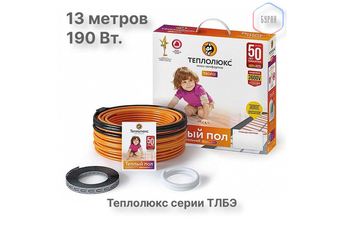 Нагревательный кабель Теплолюкс Tropix ТЛБЭ 13,0 м/190 Вт — это надёжное и эффективное решение для создания электрического тёплого пола под плитку. Его простота монтажа, высокая надёжность и длительный срок службы делают его отличным выбором для вашего дома. Вы можете приобрести этот кабель в нашем интернет-магазине и получить профессиональную консультацию по его установке и эксплуатации.