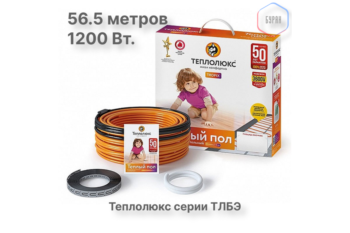 Нагревательный кабель Теплолюкс Tropix ТЛБЭ 56,5 м/1200 Вт — это надёжное и эффективное решение для создания электрического тёплого пола под плитку. Его простота монтажа, высокая надёжность и длительный срок службы делают его отличным выбором для вашего дома. Вы можете приобрести этот кабель в нашем интернет-магазине и получить профессиональную консультацию по его установке и эксплуатации.​