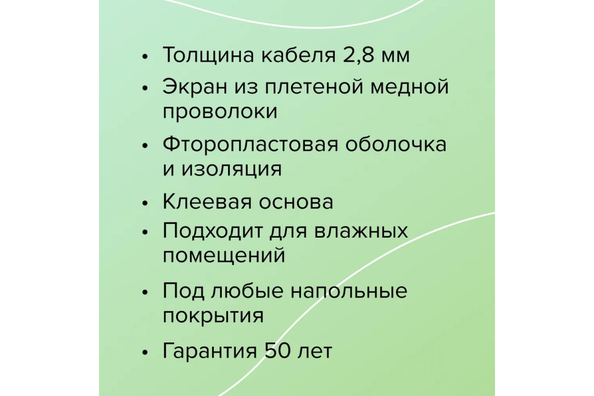 Двужильный кабель с оптимальным шагом укладки обеспечивает равномерное распределение тепла, исключая перегревы или холодные участки.