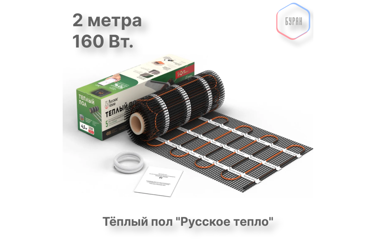 Нагревательный мат для теплого пола Русское тепло 1.0 м² 160 Вт