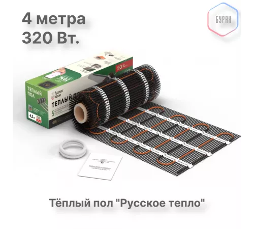 Нагревательный мат для теплого пола Русское тепло 2.0 м² 320 Вт
