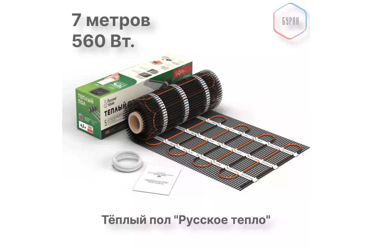 Нагревательный мат для теплого пола Русское тепло 3.5 м² 560 Вт — это современное решение для создания комфортного и эффективного обогрева пола в вашем доме. Компактный и мощный, он идеально подходит для установки под плитку, обеспечивая равномерное распределение тепла и экономию энергии.