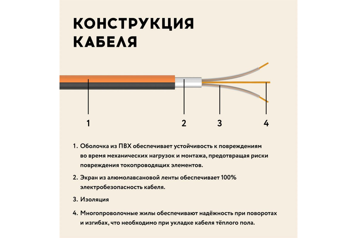 Двухжильный кабель обеспечивает равномерное распределение тепла по всей поверхности пола, исключая холодные зоны и обеспечивая комфорт в каждом уголке помещения.​