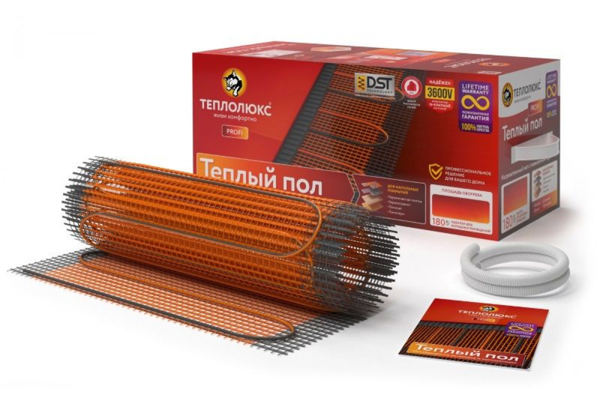 Нагревательный мат Теплолюкс ProfiMat 180Вт/1 кв.м. предназначен для создания комфортного и равномерного обогрева полов в жилых и коммерческих помещениях. Этот электрический теплый пол идеально подходит для установки под плитку, обеспечивая эффективное и экономичное отопление.