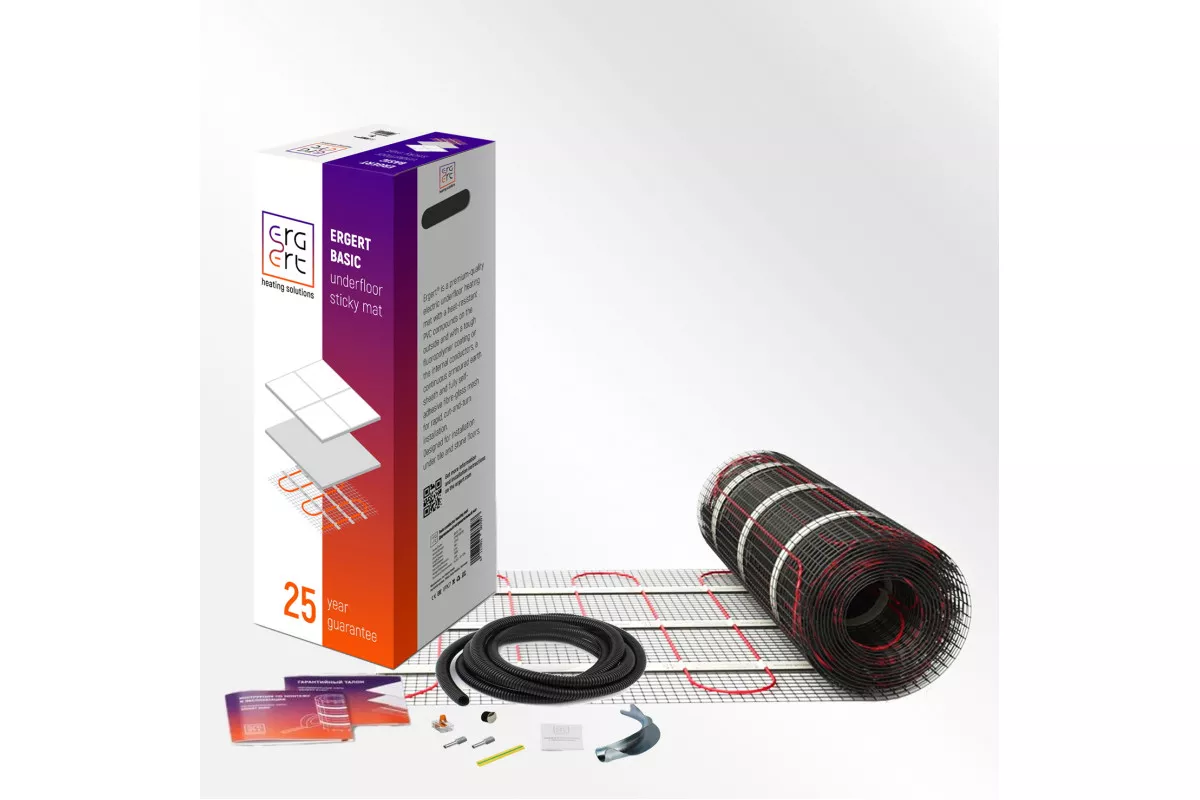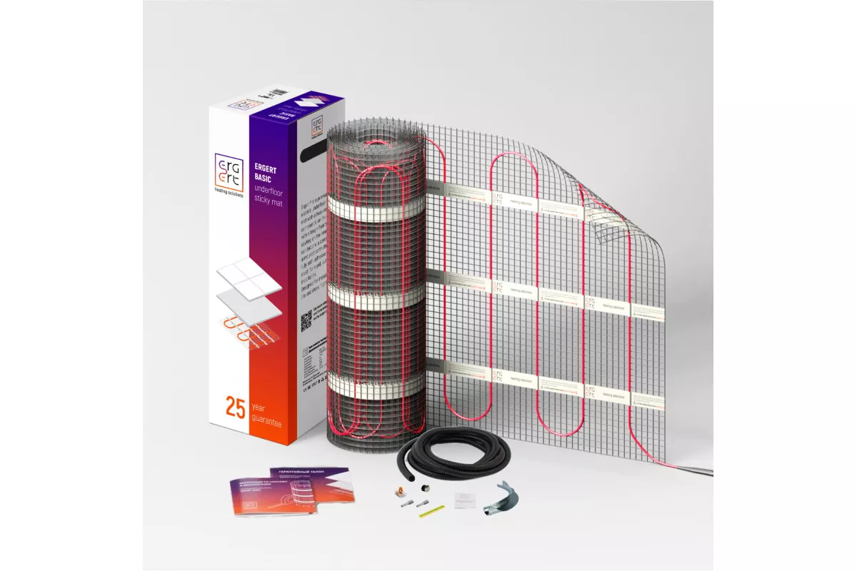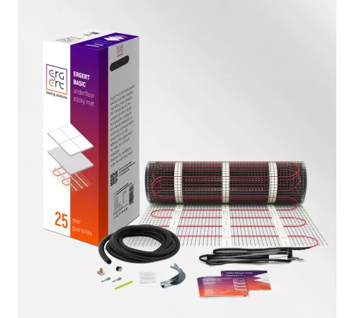 Нагревательный мат Ergert BASIC-150 300 Вт, 2 кв.м. – это эффективное решение для создания комфортного теплого пола под плитку.  Укладка под керамическую плитку или керамогранит делает его универсальным и удобным в использовании.