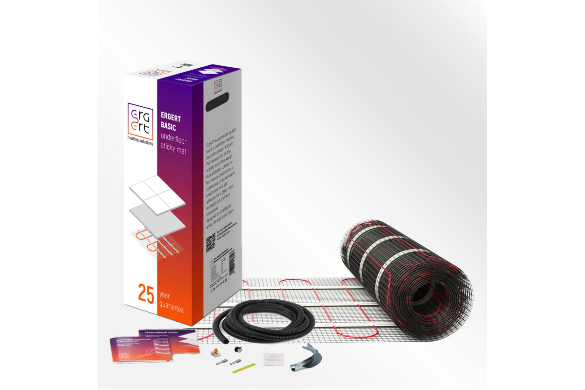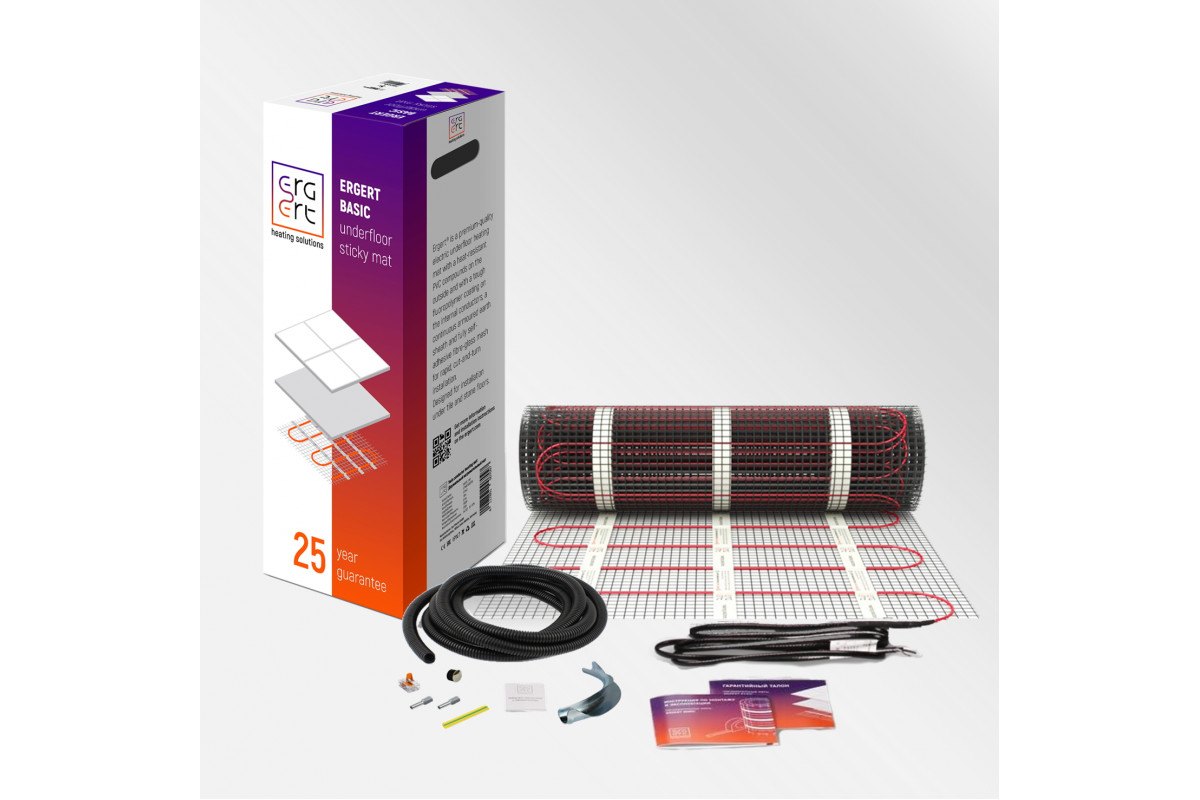Нагревательный мат Ergert BASIC-200 500 Вт, 2,5 кв.м. — это современное решение для создания комфортного тёплого пола в помещениях с холодным покрытием. Благодаря мощности 200 Вт на квадратный метр и компактным габаритам, этот мат идеально подходит для укладки под плитку и керамогранит.