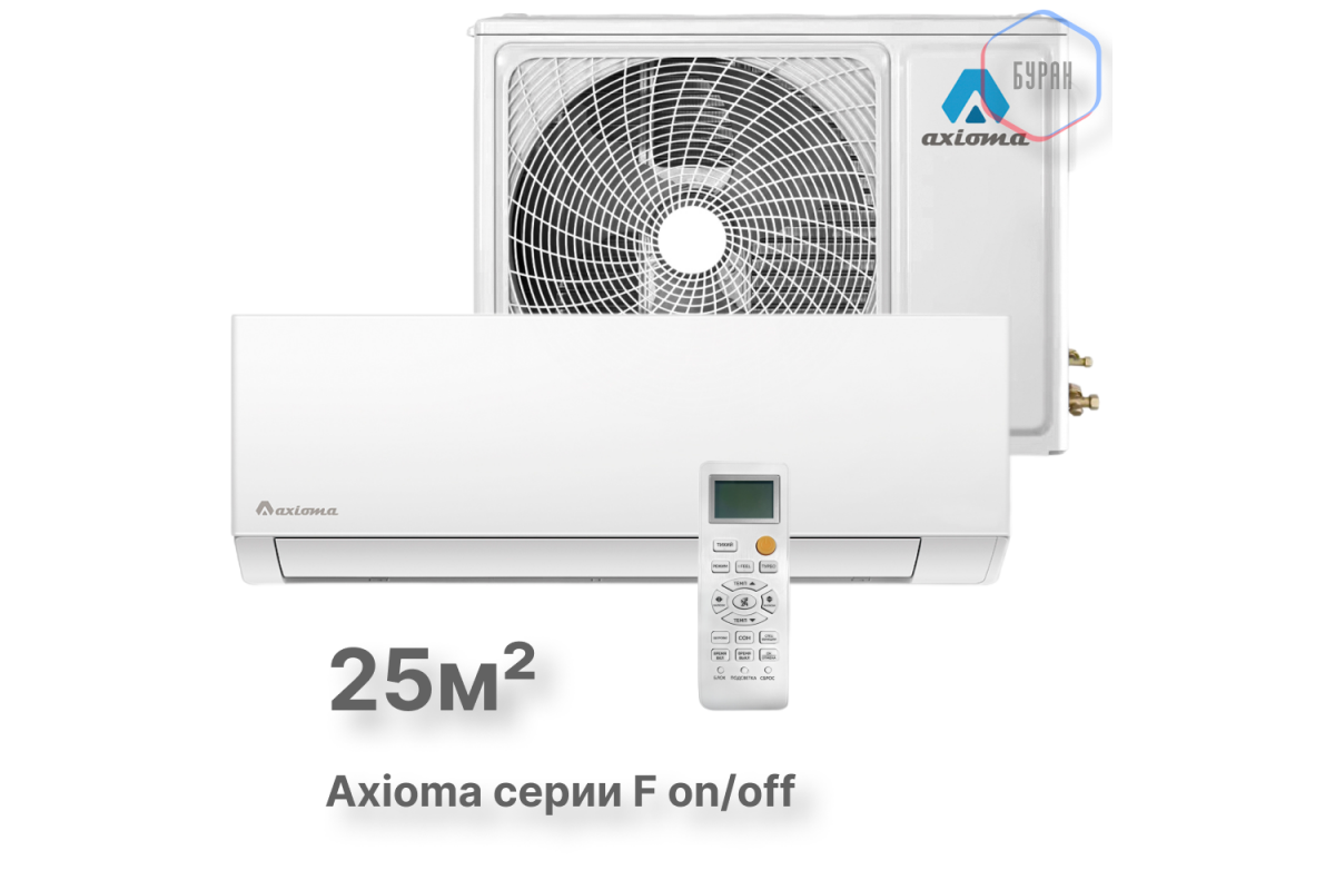 Выбирая кондиционер для небольшого помещения, важно учитывать не только мощность, но и функциональность устройства. Axioma серии F on/off сочетает в себе надежность, энергоэффективность класса «A» и современный дизайн. Использование экологически безопасного хладагента R32 делает его более дружелюбным к окружающей среде. ​