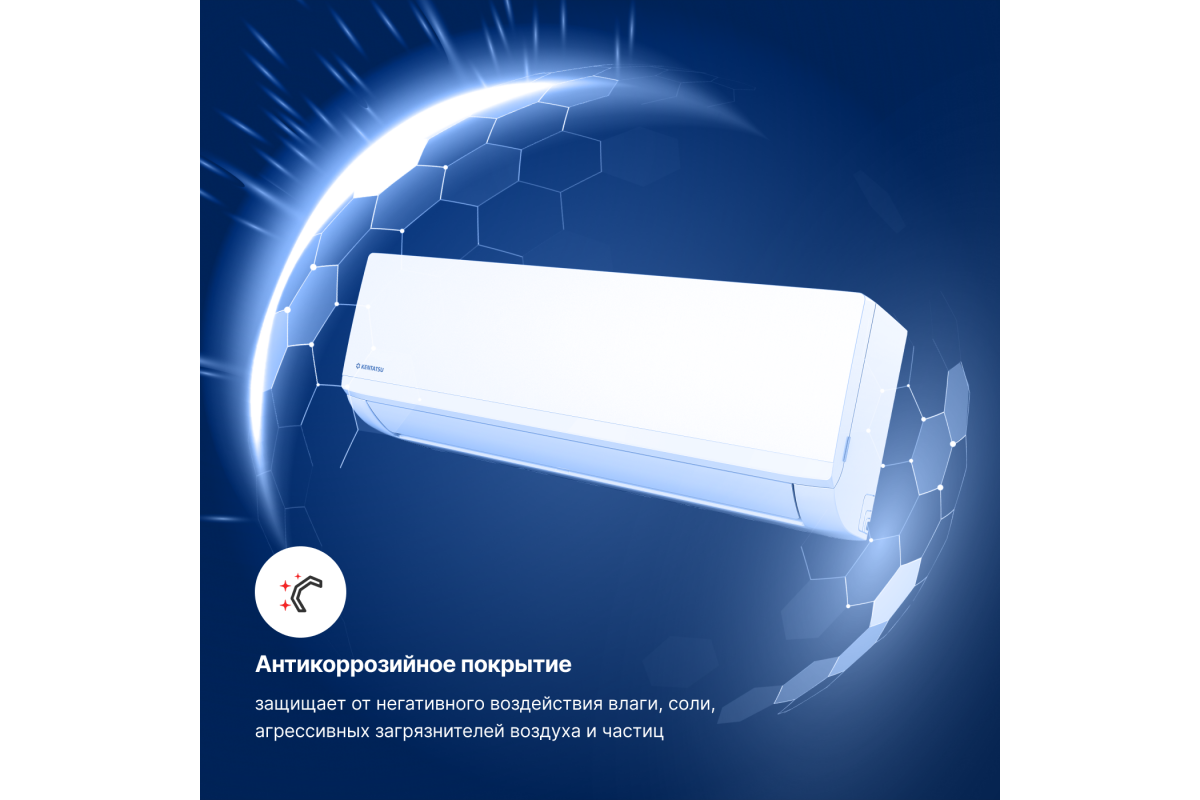 Покрытие Golden Fin: антикоррозийное покрытие теплообменника защищает его от влаги, соли и других агрессивных воздействий, продлевая срок службы устройства .