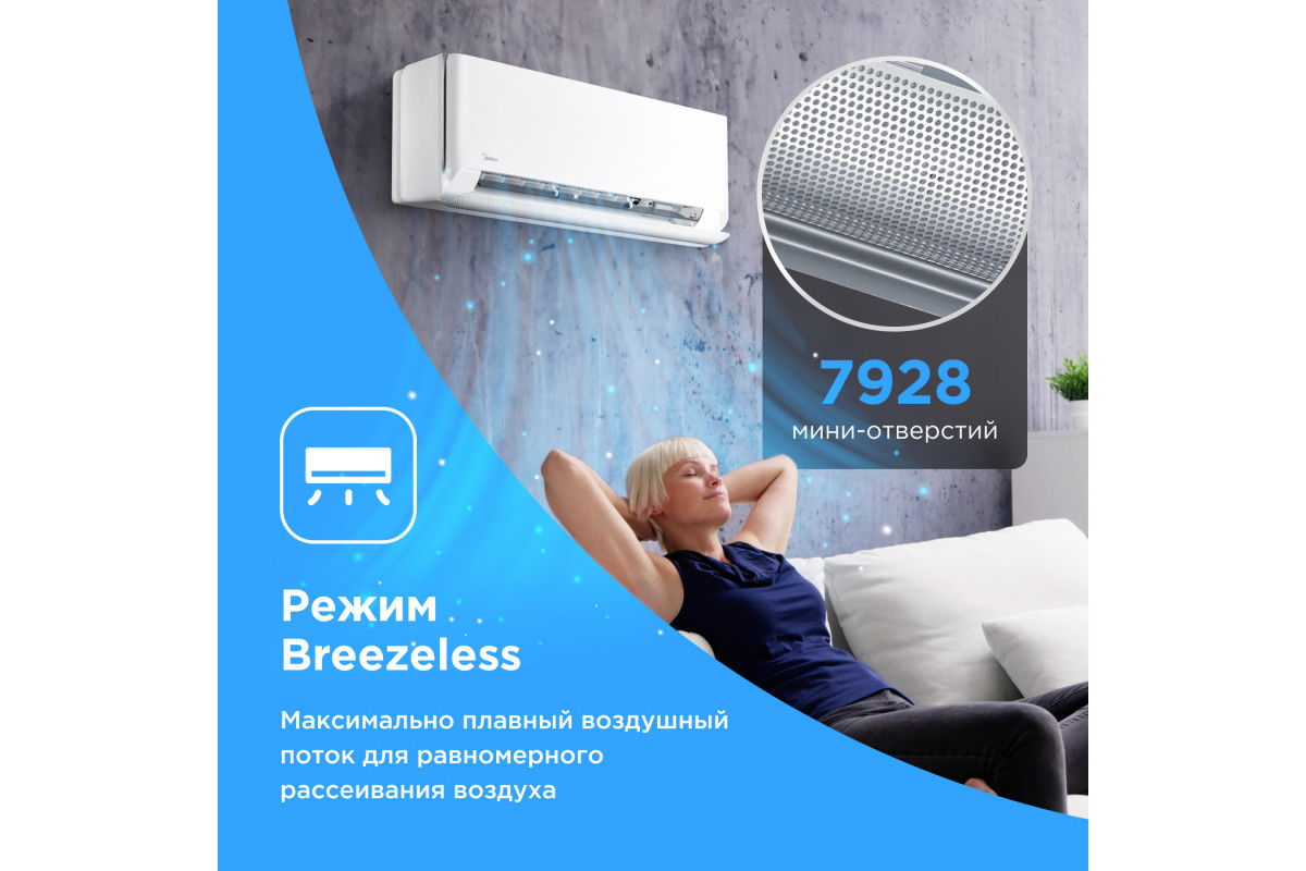 Выбирая Midea Breezeless E, вы получаете не только высокую производительность, но и комфортный микроклимат без сквозняков. Благодаря инновационной технологии Breezeless™, воздух равномерно распределяется по комнате, создавая ощущение естественной прохлады. Энергоэффективность класса A++ позволяет снизить энергопотребление и сэкономить на счетах за электроэнергию. ​