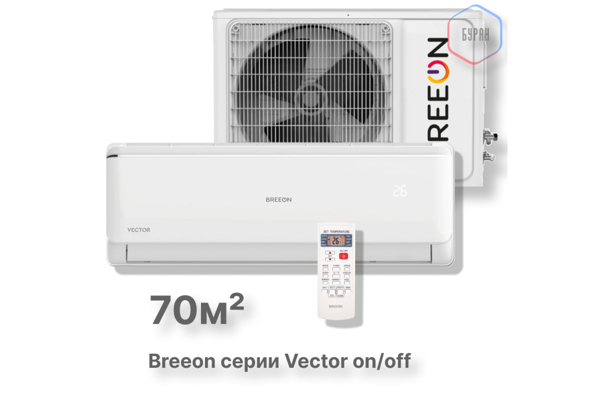 Кондиционер BREEON BRC-24AVO предназначен для эффективного охлаждения и обогрева помещений площадью до 70 м². ​