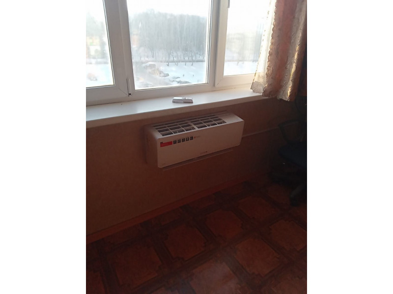 А вот вообще уникальный случай в нашей практике! С чем связано решение смонтировать сплит-систему именно таким образом, для нас осталось тайной за семью печатями. Как не пытали заказчика – ответа не добились! Может у вас есть какие-нибудь мысли на этот счет? Пишите в комментариях. Интересно будет узнать  ваше мнение, друзья!