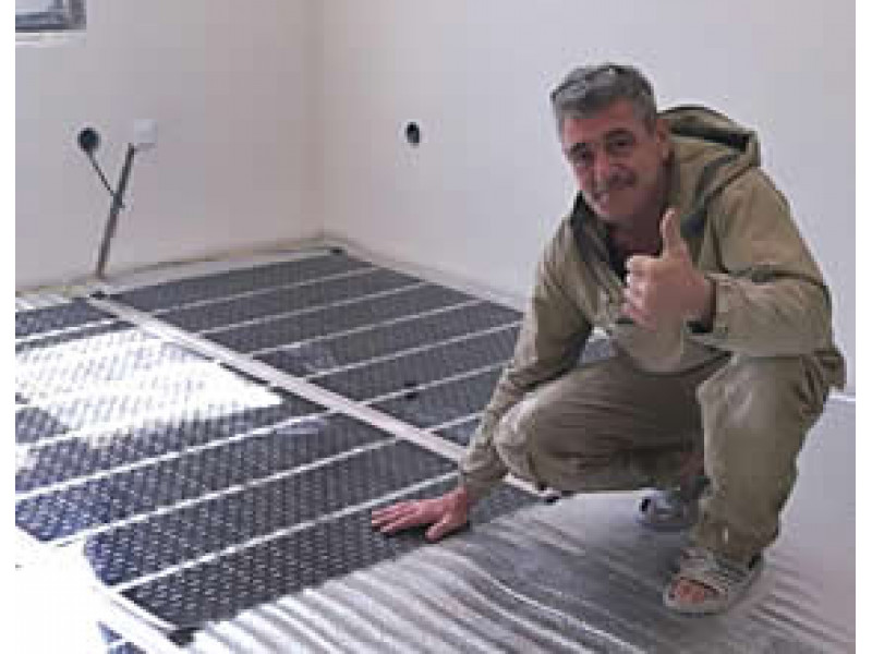 Хозяева приняли решение уложить греющую пленку, выбрана марка Q-Term. Данный вид пленки рассчитан на «сухую укладку». Напольное покрытие - планируется ламинат.