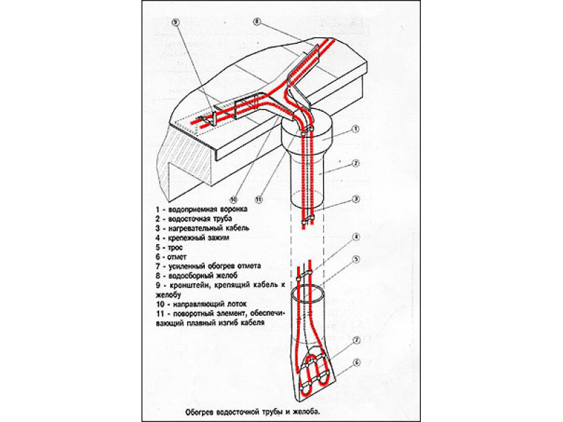 Обычно антиобледенение водостоков устанавливают вместе с системой обогрева кровли, т.к. одна без другой не так эффективна.