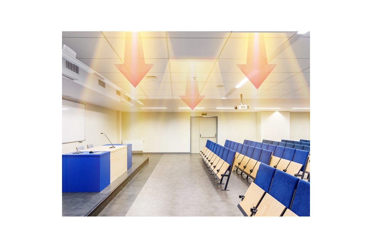 Сфера применения - Обогреватели оптимально подходят для обогрева офисных, торговых, общественных помещений, а также кафе, баров, ресторанов – любых помещений, где используются системы подвесных потолков типа «Армстронг».