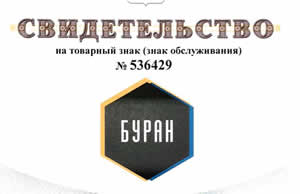 Сертификат Компании Буран в Государственном реестре товарных знаков и знаков обслуживания.