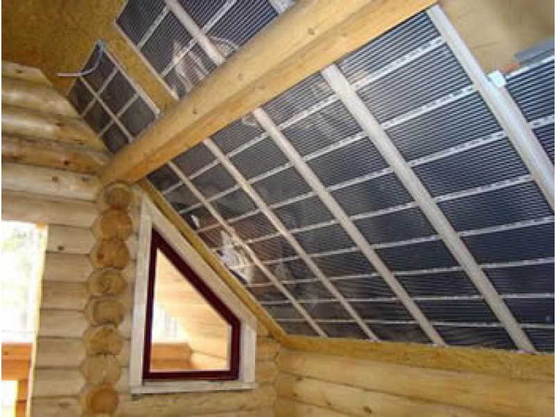 ик обогреватели, пленочный обогрев, инфракрасные обогреватели Действие потолочного инфракрасного отопления - это принцип естественного природного теплообмена. Самым известным инфракрасным обогревателем является Солнце. Инфракрасные длинноволновые лучи, проходя через космос с минимальными потерями энергии, достигнув поверхности Земли поглощаются и превращаются в тепло. Пленочный инфракрасный потолочный обогрев работает по тому же принципу. Они устанавливаются между теплоизоляционным материалом (экофол, полифом, пенотерм) и покрытием потолка (ГКЛ,ГВЛ,ДСП, вагонка, пластик, натяжные потолки и т. д, кроме зеркал и металла). Пленочные обогреватели представляют собой тонкую, но очень прочную полиэстеровую пленку в которую впаяны две медные шины, соединенные между собой параллельными полосами карбонового полупроводника. На шины подается напряжение 220 Вольт переменного тока.