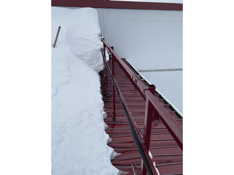 Таким образом мы "очищаем" опасные участки крыш от образования "сосулей" и обильного схода снега. Постепенно кабель протапливает весь много килограммовый объем снега и превращает его в воду.