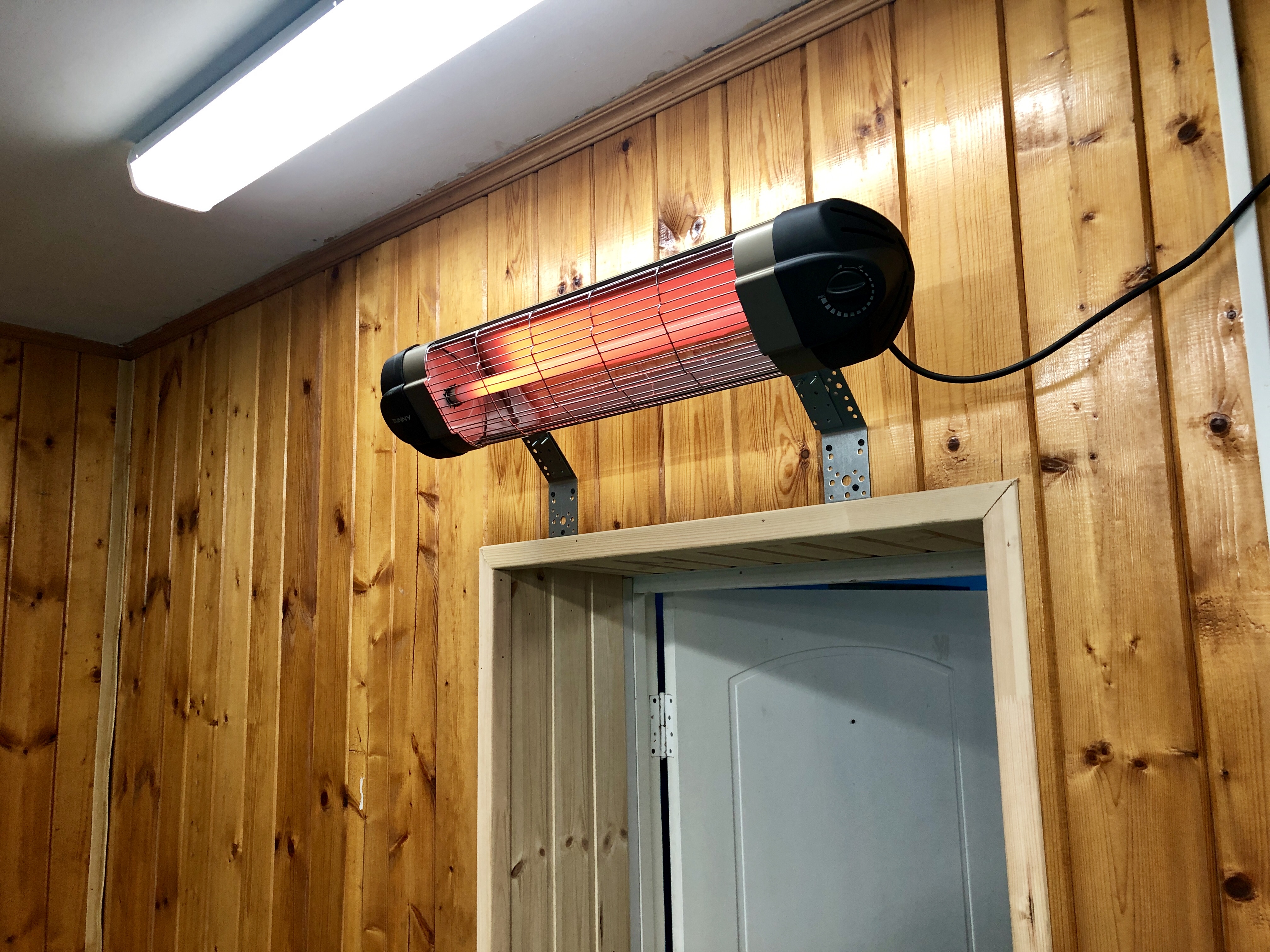 Кронштейн крепления световых обогревателей мы доработали, чтобы направить тепловой поток в нужном направлении и отодвинуть обогреватель от деревянной обшивки стены, на фото это видно. Примечательно то- что добиться существенного теплового эффекта удалось минимальной мощностью обогревателей. После включения обогревателя в спортзале стало существенно теплее. Есть предположение, учитывая довольно мягкие климатические условия Сочинского региона, что одного светового обогревателя 2кВт на 70 квадратных метров будет достаточно. На данный момент, в нашей практике, это рекорд эффективности. Но, на всякий случай, мы разместили ещё несколько, в качестве резервных источников тепла на случай снижения температуры за окном. Теперь можно не переживать, что юные спортсмены вместо пользы от занятий получат простуду. Удачи им в спорте и побед!