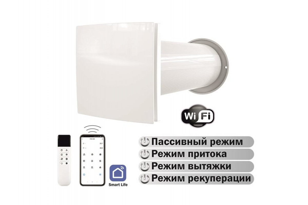 Компактное и эффективное решение: один прибор заменяет четыре устройства (рекуператор, бризер, вытяжка, пассивный клапан).
