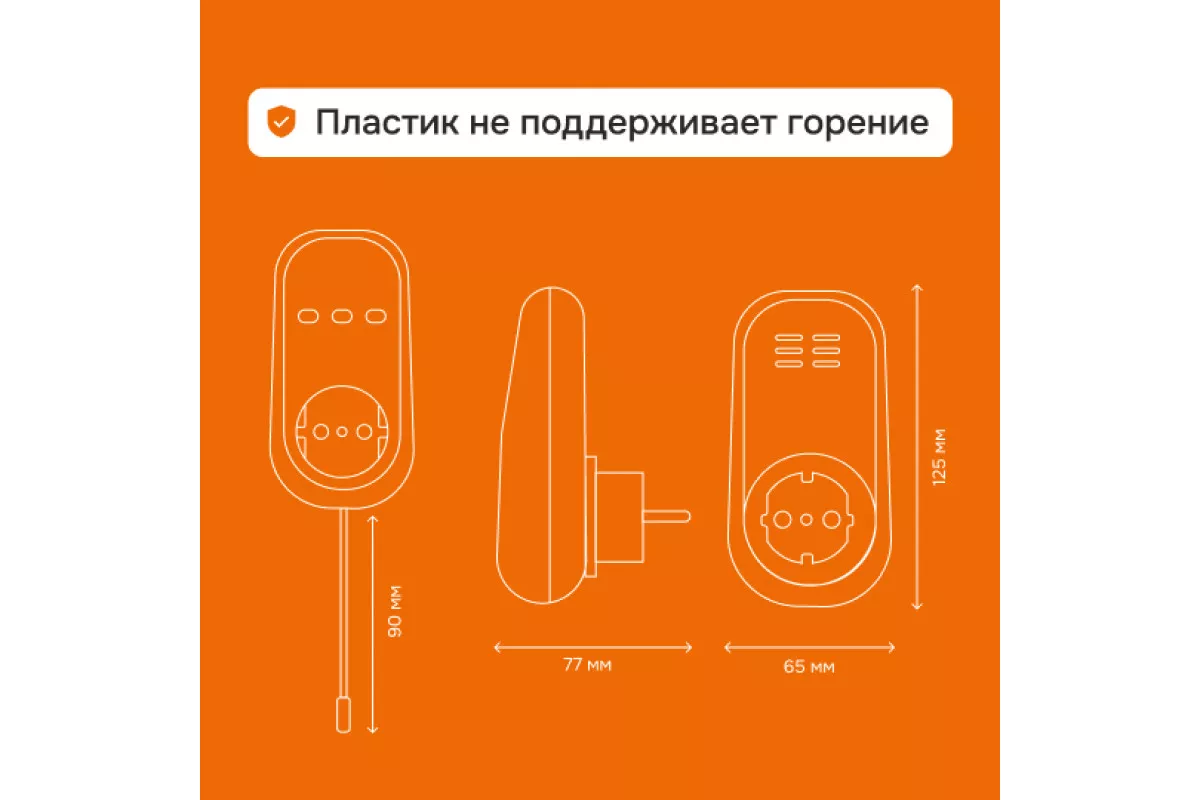 Самозатухающий пластик: корпус выполнен из материала, не поддерживающего горение, что повышает безопасность эксплуатации.