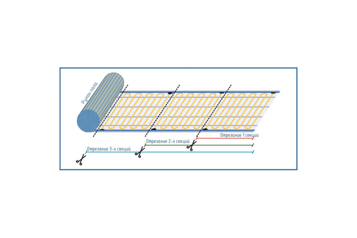 Конструкция мата позволяет легко отрезать необходимую длину секции, адаптируя её под конкретные размеры помещения. Гибкий кабель и тонкая структура (толщина мата всего 4 мм) упрощают укладку и минимизируют подъем уровня пола.