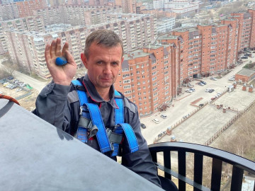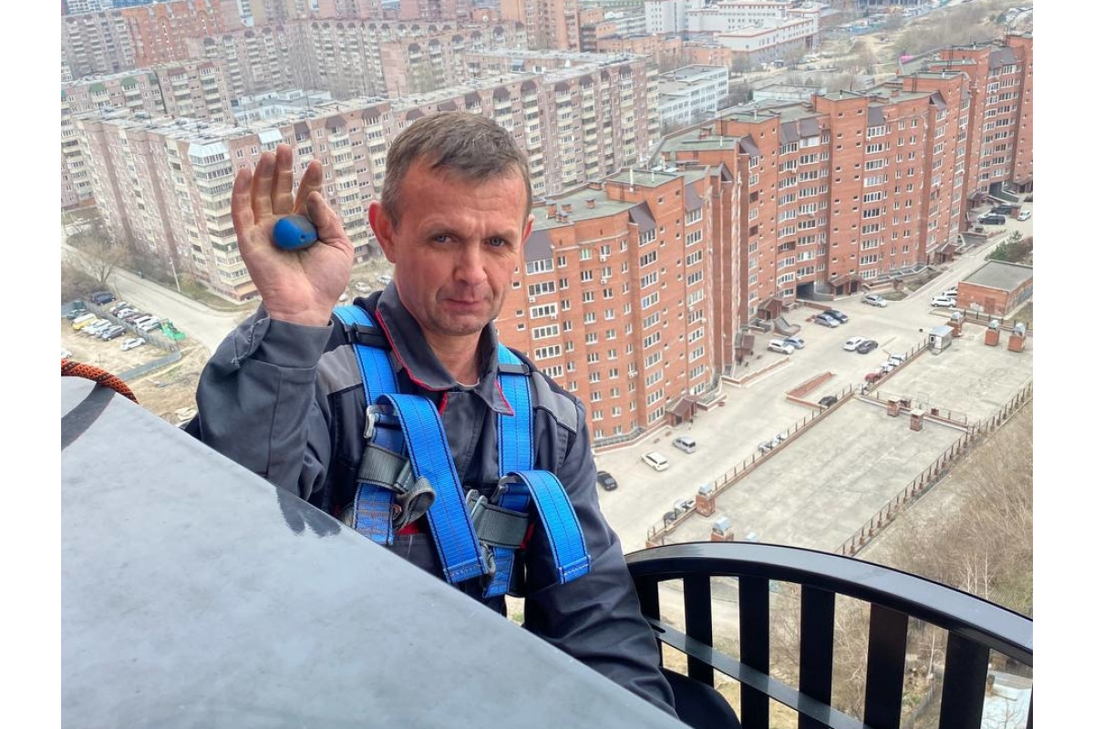 Наши монтажники Виталий Сергеевич и Андрей (фотограф) выполнили невероятную установку внешнего блока кондиционера Daichi на 17 этаже!