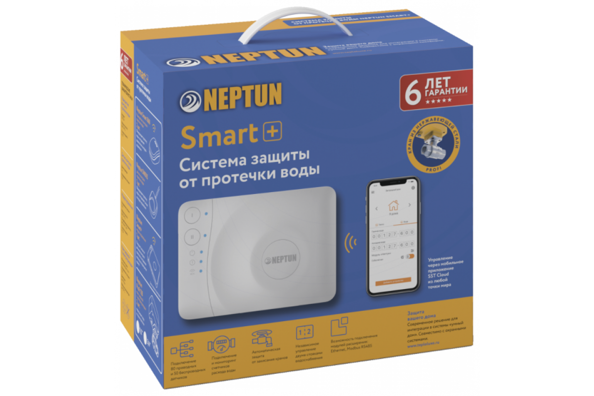Умная система защиты от протечки воды Neptun PROFI Smart+ предназначена для обнаружения и локализации протечек воды в системах водоснабжения. Компоненты системы связаны и взаимодействуют друг с другом через центральный контроллер (модуль управления Neptun Smart+), который может быть укомплектован дополнительными платами расширения: