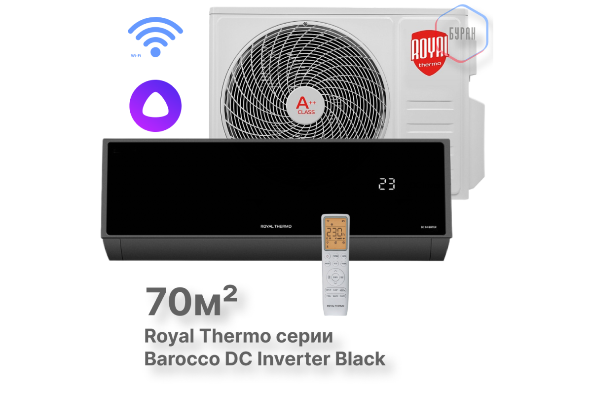 Сплит-система инверторного типа Royal Thermo Barocco DC RTBI-24HN8_V2/black комплект — это идеальный выбор для тех, кто ценит комфортстиль и технологичность. Он обеспечит оптимальный микроклимат в вашем помещении в любое время года. Подарите себе и своим близким уют и свежесть каждый день! 😊