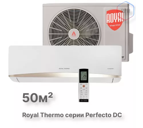Сплит-система инверторного типа Royal Thermo Perfecto DC RTPI-18HN8 комплект идеально подходит для помещений площадью до 50 м², обеспечивая эффективное охлаждение и обогрев. Это отличный выбор для спальни, кабинета или небольшой гостиной. ​