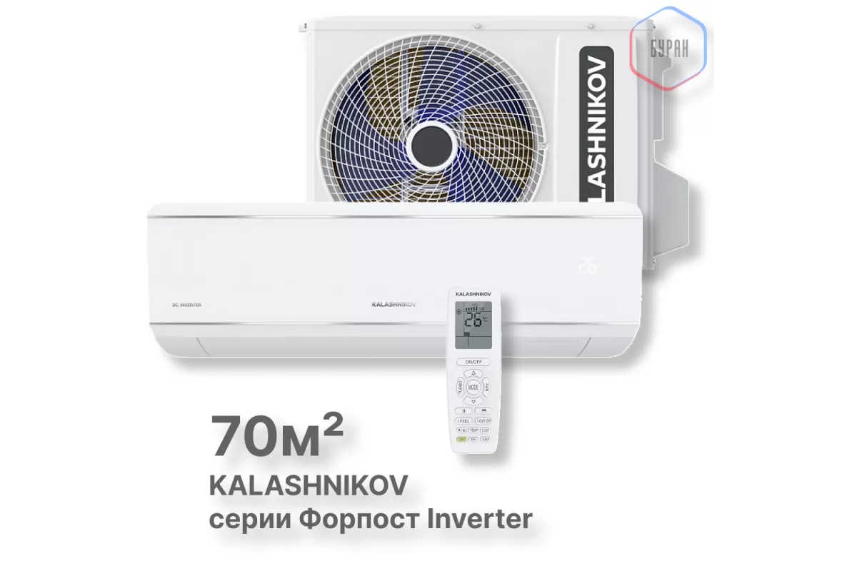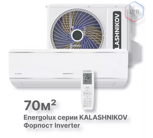 Сплит-система Energolux KALASHNIKOV Форпост Inverter KVAC-I-24IN-FP1/KVAC-I-24OD-FP1 — это сочетание передовых технологий, высокой энергоэффективности и надежности. Она станет отличным решением для создания комфортного климата в вашем помещении площадью до 70 кв. м.​