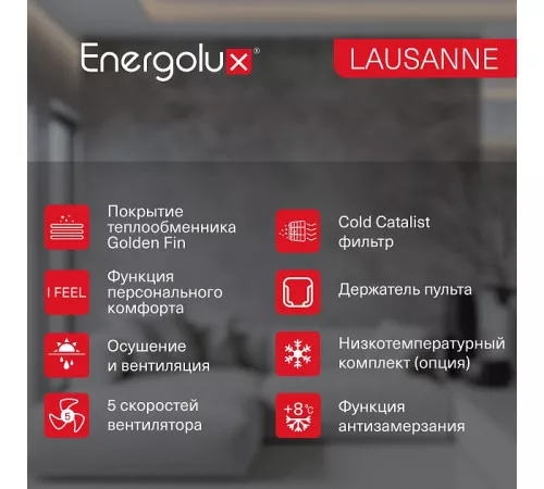 Сплит-система Energolux LAUSANNE SAS09AR1-A/SAU09AR1-A сочетает в себе передовые технологии, высокую энергоэффективность и стильный дизайн. Она станет надёжным помощником в создании комфортного и здорового микроклимата в вашем доме или офисе. Сделайте выбор в пользу качества и комфорта с Energolux!
