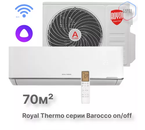 Сплит-система Royal Thermo Barocco RTB-24HN1_V2 комплект идеально подходит для помещений площадью до 70 м². Это оптимальный выбор для спален, детских комнат, небольших офисов или уютных гостиных.​