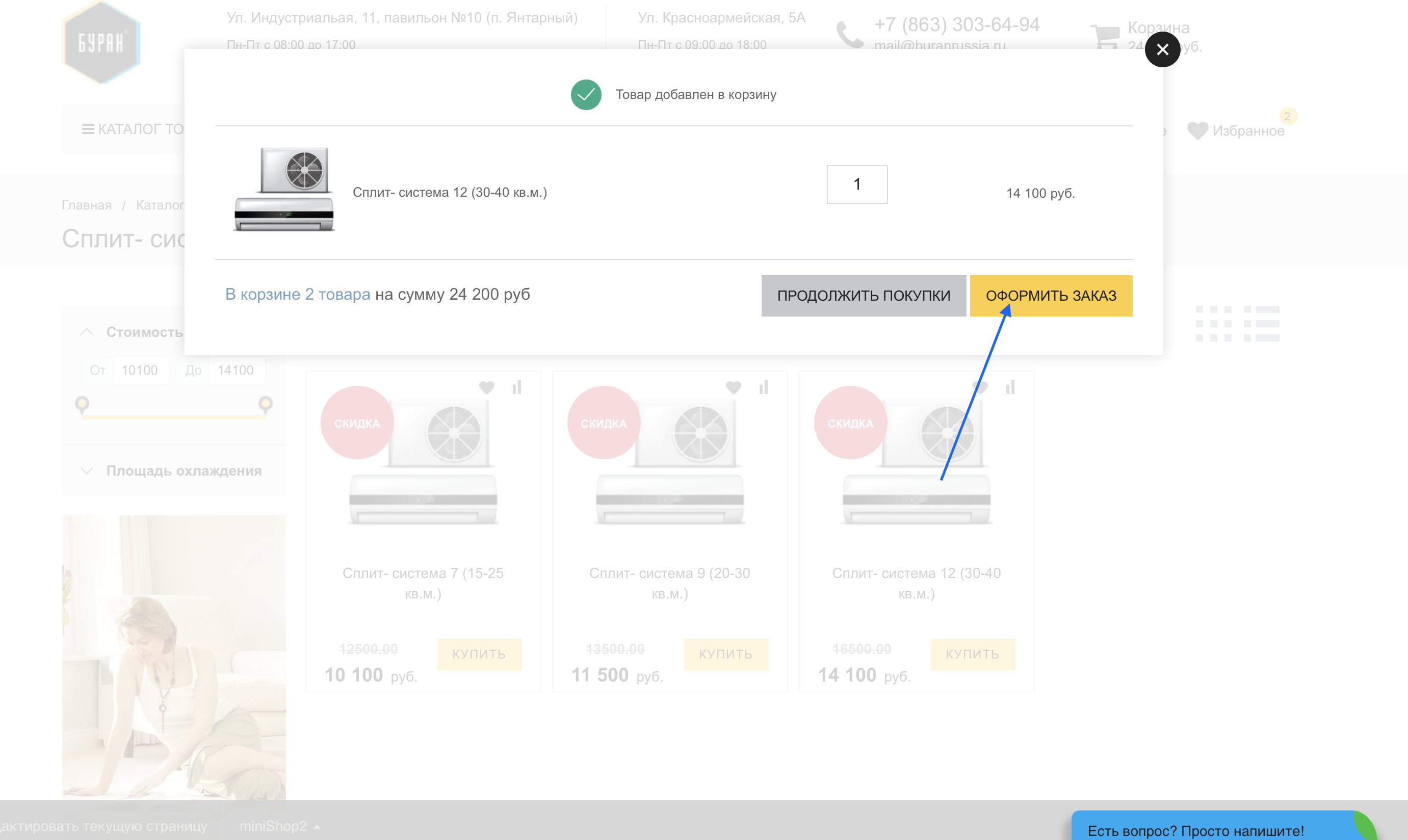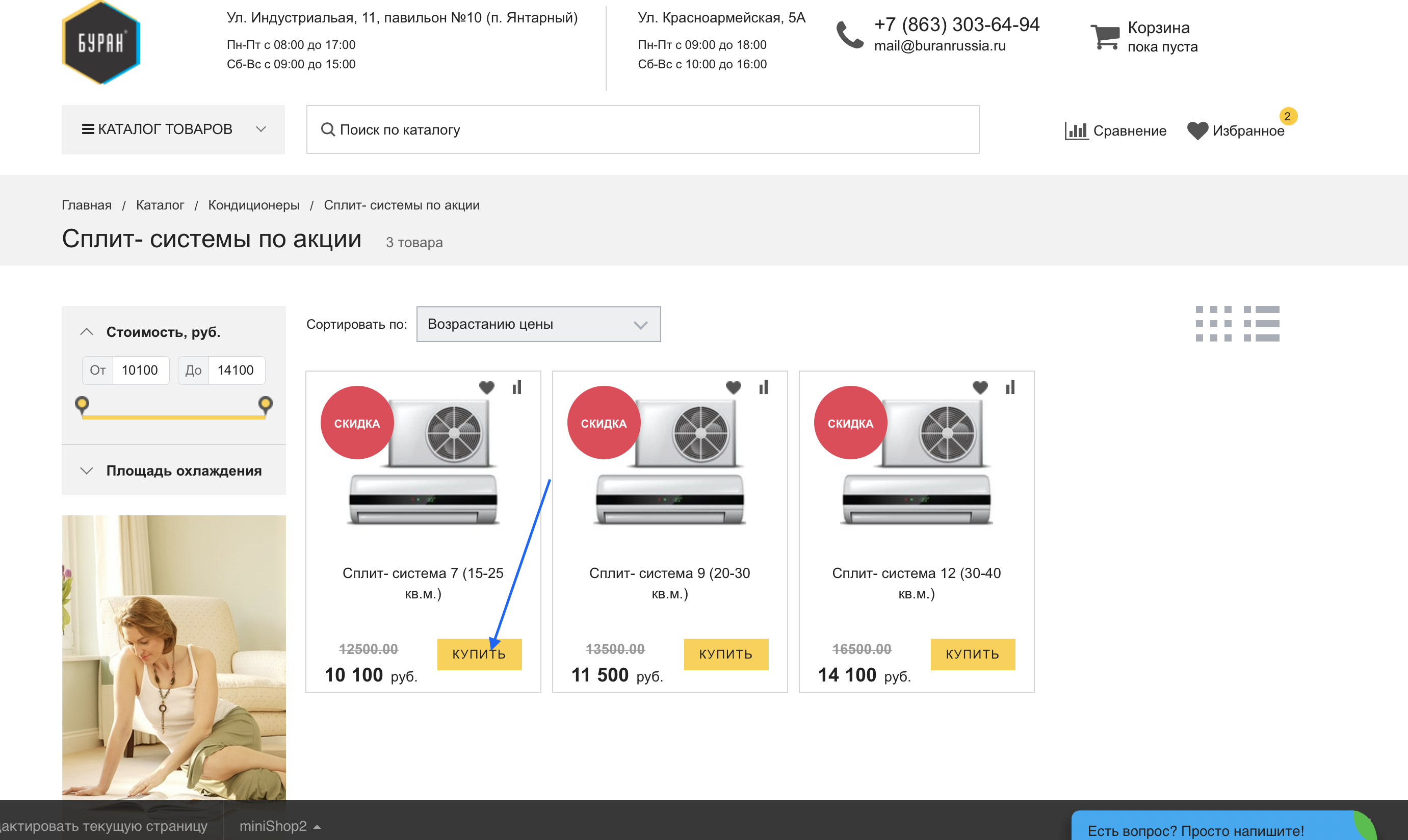 - Нажать кнопку «купить» рядом с интересующим вас кондиционером