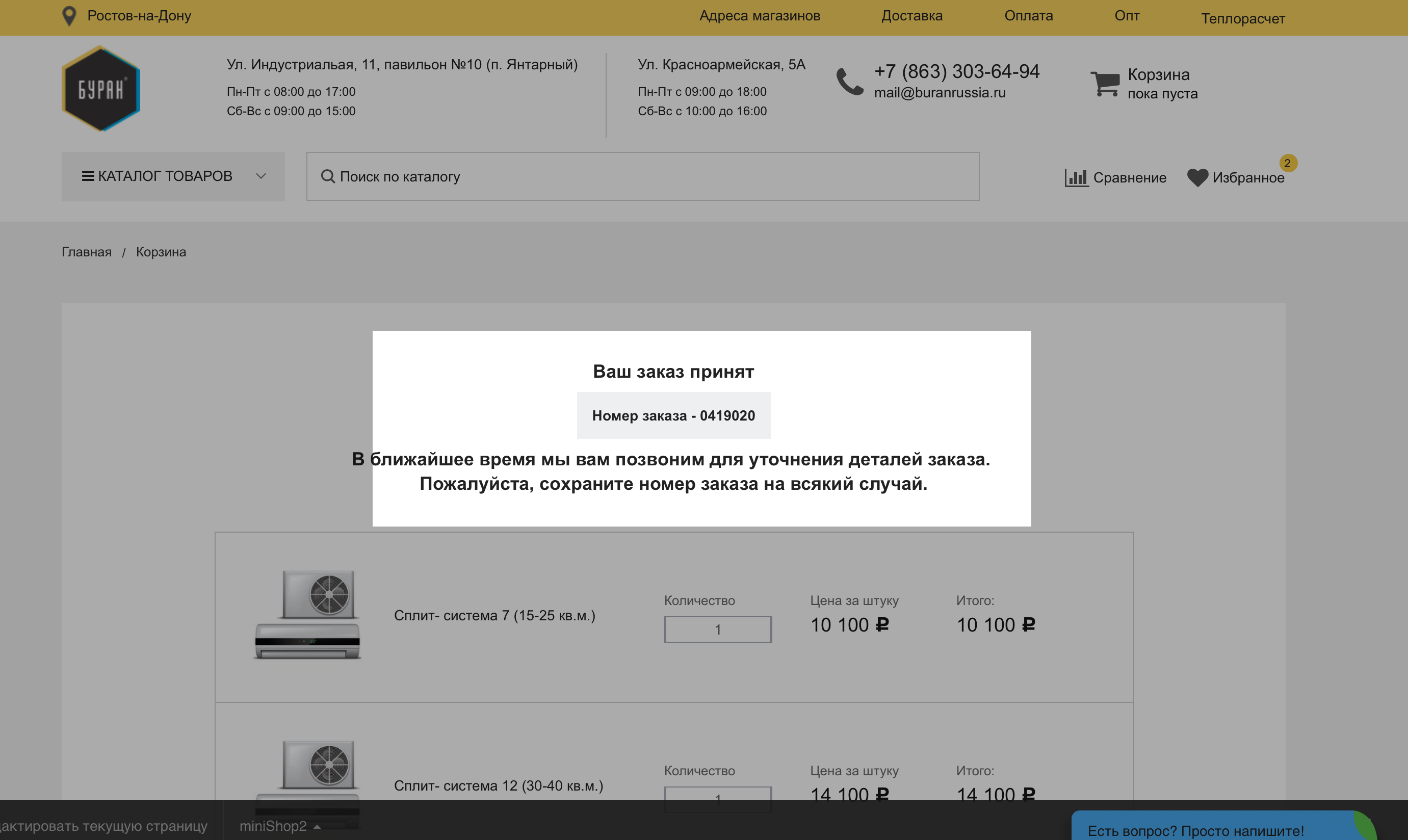 С этого момента кондиционер почти ваш, осталось дождаться звонка менеджера и подтвердить детали вашего заказа (доставка или самовывоз, профессиональный монтаж сплит- системы по ГОСТу)