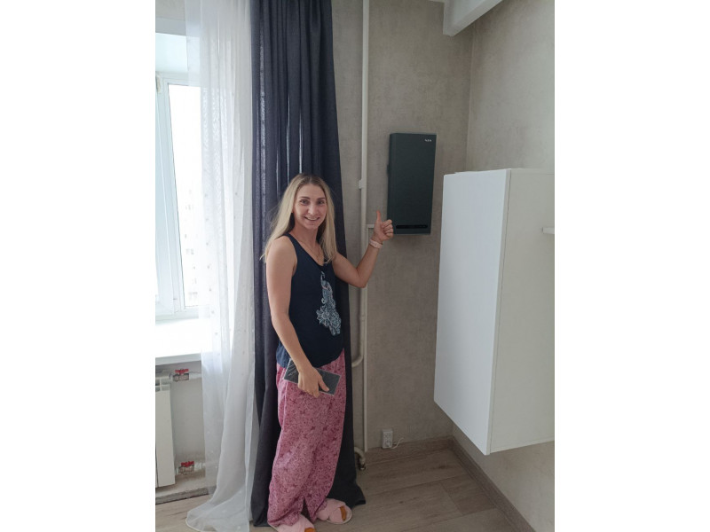 Максимально оперативно и аккуратно нашими специалистами был решён вопрос без пыльного бурения отверстия под рекуператор с последующим монтажом рекуператора Vakio Base Smart Space Gray в стильном сером цвете, который как нельзя лучше подошел к интерьеру наших друзей!