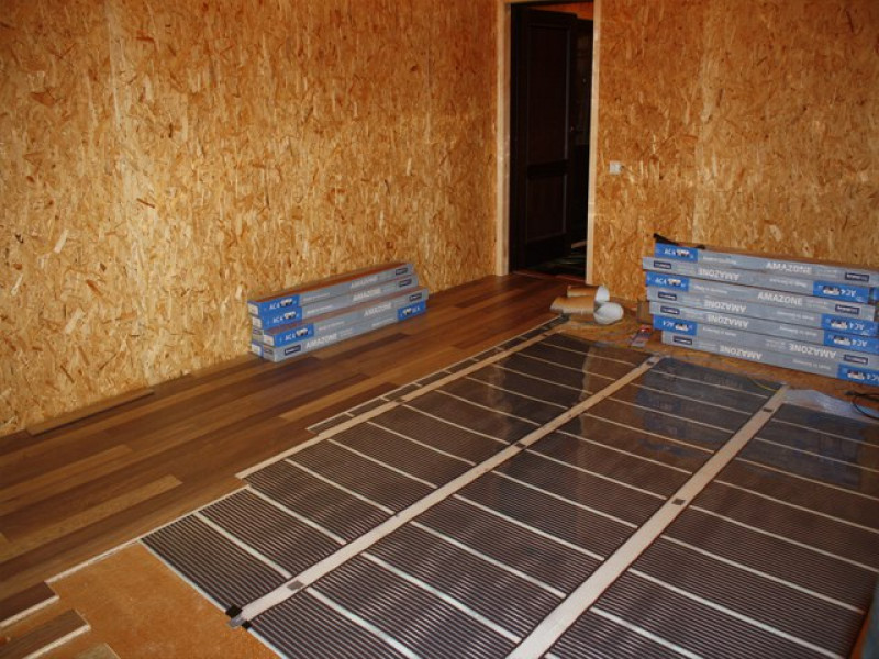 Пленочные теплые полы не нуждаются в использовании стяжки. Наиболее подходящим сочетанием является линолеум, ламинат или ковролин