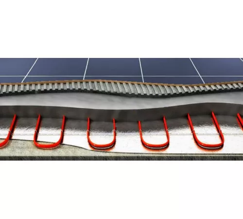 Данная разновидность греющего кабеля применяется для организации системы теплый пол в стяжке. Достаточно 3см (можно больше) бетонной стяжки, плиточного клея или нивелирующей смеси, чтобы система могла полноценно функционировать.