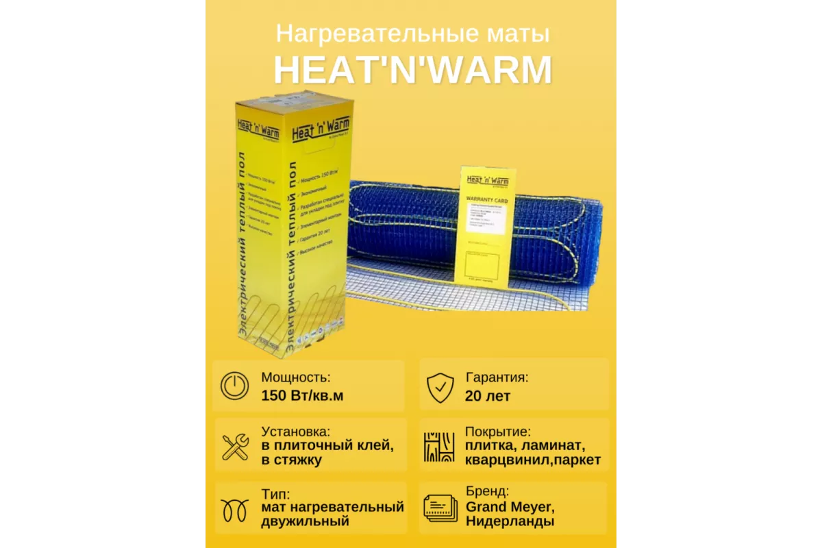 Представляем вашему вниманию Теплый пол нагревательный мат Heat'n'Warm EcoNG150-0110 (11,0 кв. м) — эффективное и надежное решение для создания комфортного теплого пола в вашем доме. Этот электрический теплый пол обеспечивает равномерный обогрев поверхности и отличается простотой монтажа.