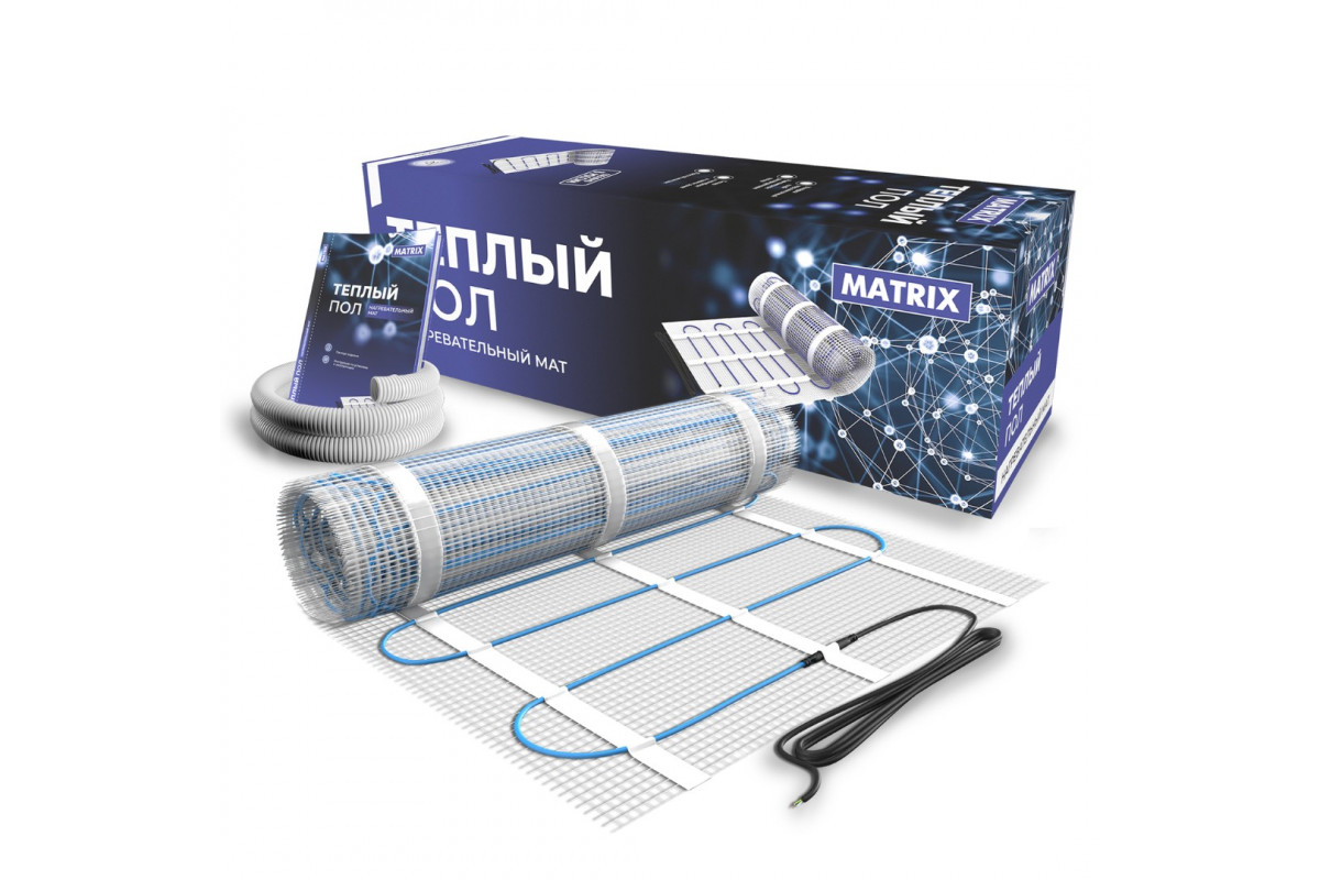 Нагревательный мат теплого пола MATRIX позволит Вам смонтировать теплый пол на площади от тринадцати квадратных метров. Основа из эластичного волокна дает возможность укладывать мат без особых усилий и придавая нагреваемой площади нужную форму.