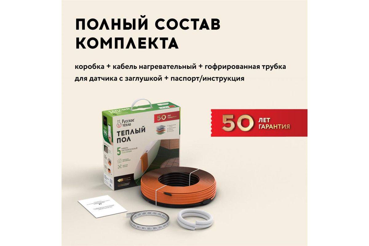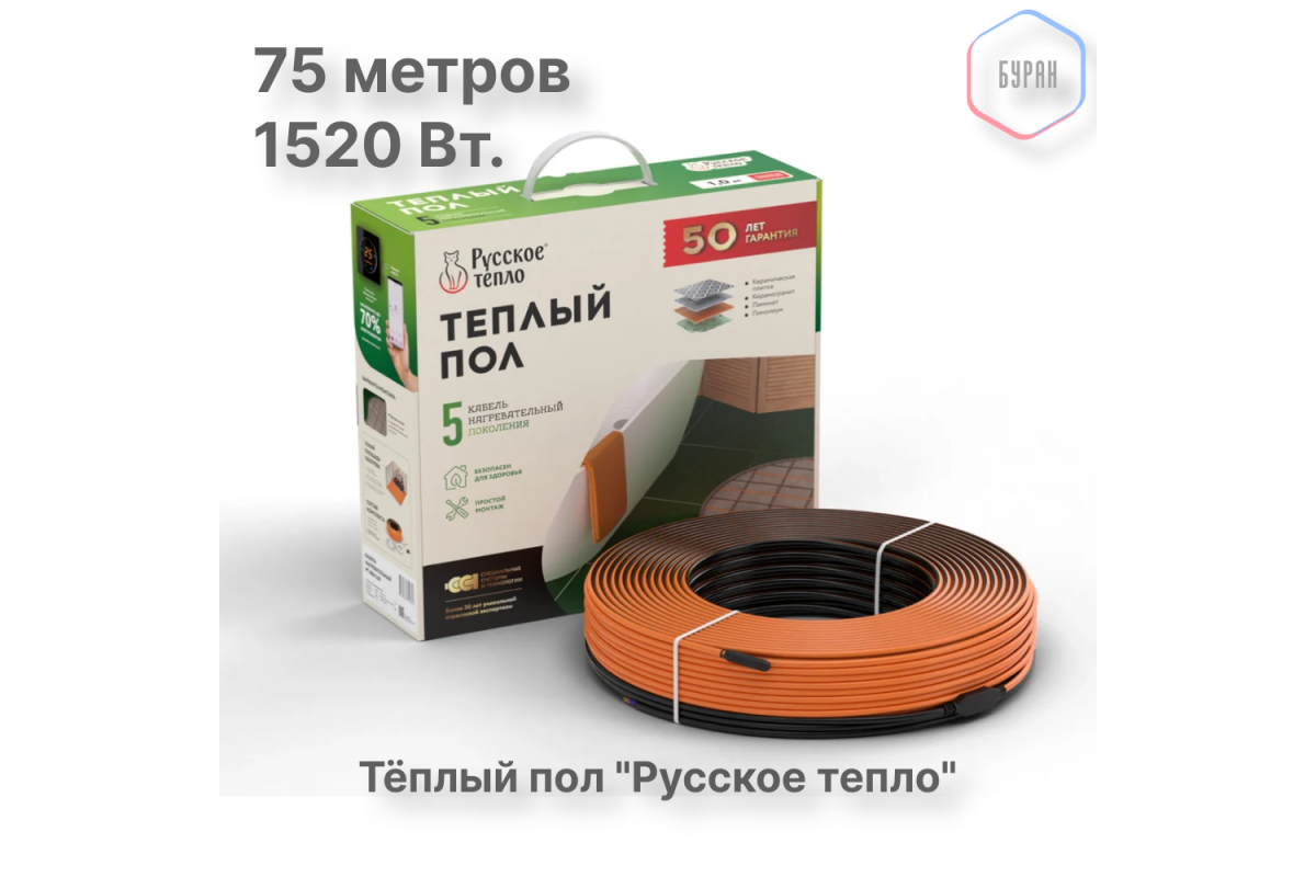 Теплый пол кабельный "Русское тепло" РТ-1520-75,0 — надёжный нагревательный мат под плитку
