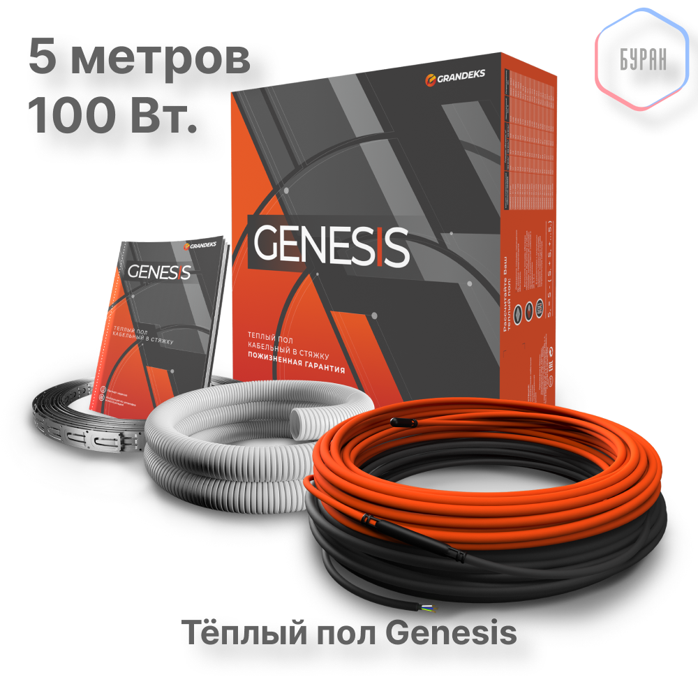 Теплый пол греющий кабель 5м 100Вт