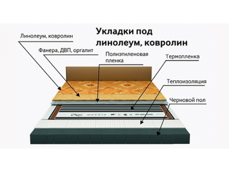 Для обогрева пола с покрытием из линолеума необходимо использовать наиболее тонкий из всех известных теплых полов – пленочный. Он не требует применения жесткой подложки, а также бетонной стяжки, как греющие электрические или карбоновые маты. Под линолеум используют греющую систему на основе пленки из углеродного материала и графитовых стержней, она известна под названием инфракрасного теплого пола. Система имеет ряд преимуществ перед аналогичными системами обогрева пола. Она более экономна в эксплуатации, не нуждается в стяжке при монтаже, не сушит воздух, подключается к сети 220 В. Пленочный пол собирается из матов на основе полимерной пленки, обладающей большой прочностью. В эту прочную полимерную пленку впаяны графитовые стержни – основные нагревательные элементы системы.