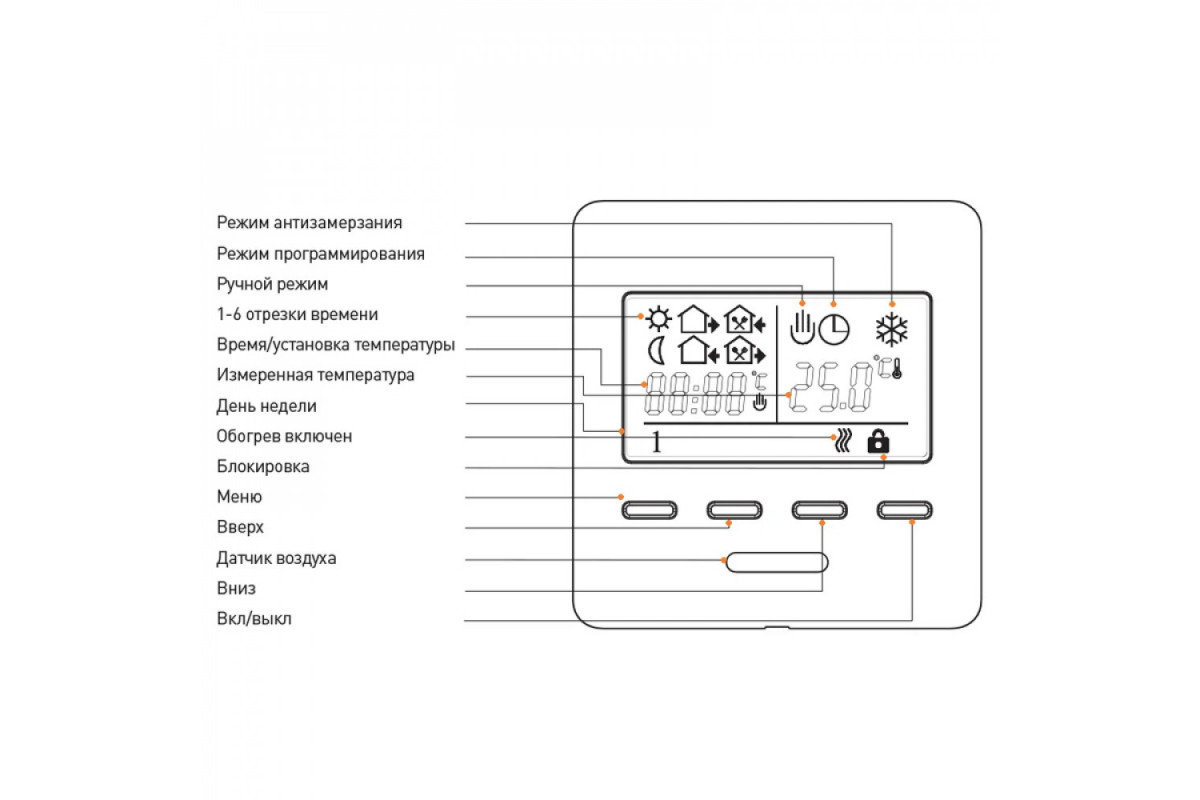 Устройство поддерживает программирование температурных режимов на каждый день недели, позволяя настроить комфортный климат в соответствии с вашим расписанием.​