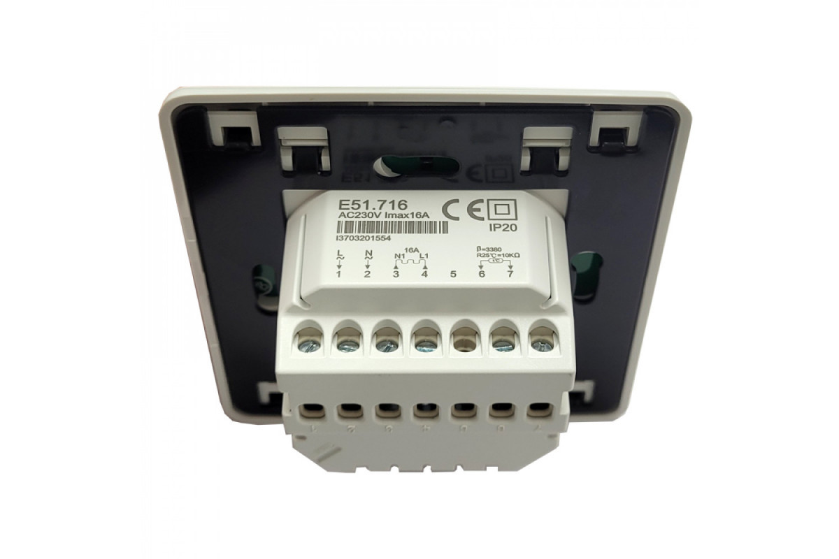 Терморегулятор E 51.716 (3.5 кВт) белый — современное устройство для управления системами электрического тёплого пола. Он обеспечивает точный контроль температуры, повышая комфорт и энергоэффективность вашего дома.
