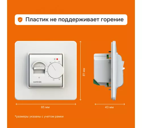 Welrok MEX легко монтируется в стандартную монтажную коробку и не требует сложной настройки. Управление осуществляется с помощью поворотной ручки, позволяющей точно установить желаемую температуру.