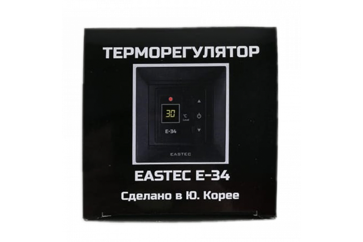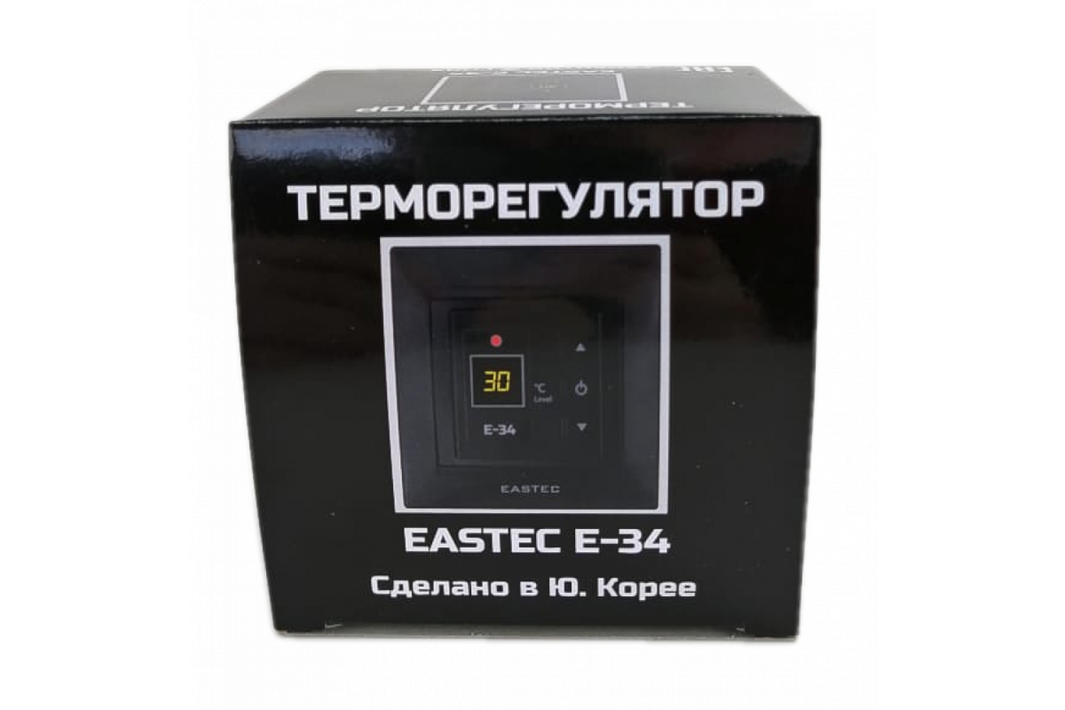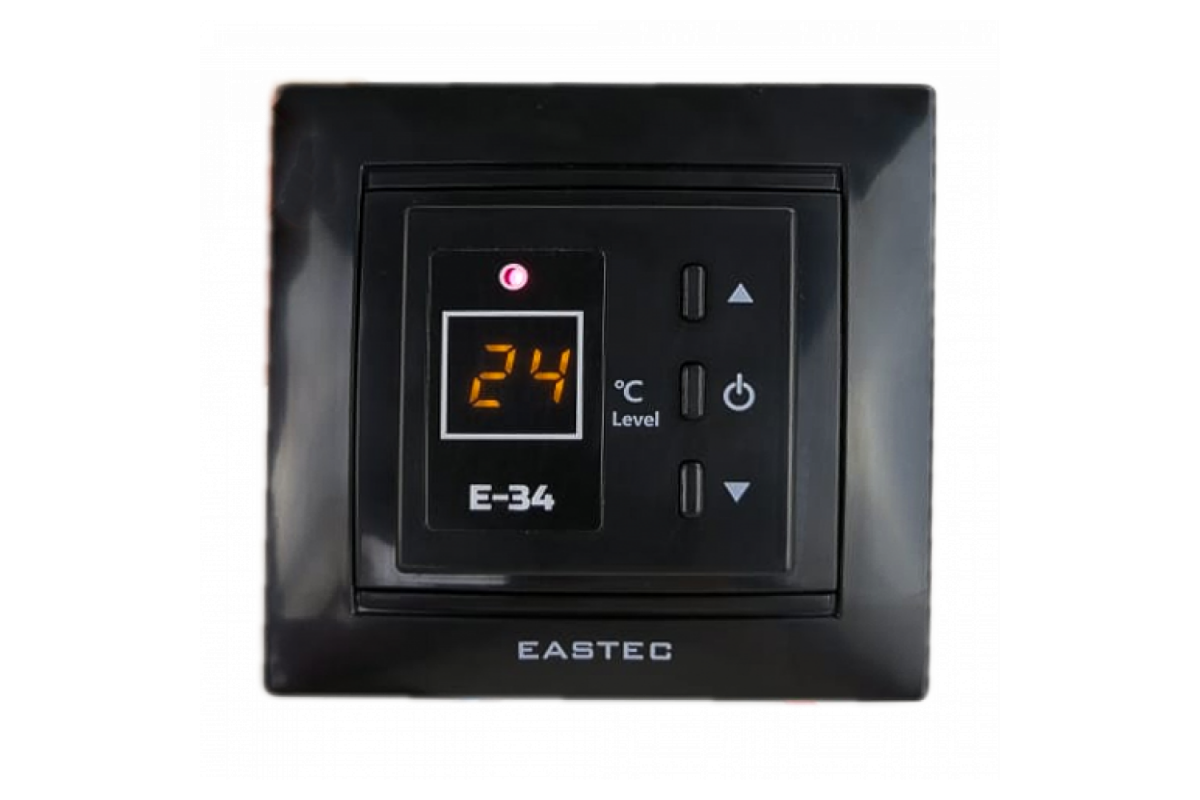 EASTEC E-34 оснащён цифровым дисплеем, отображающим текущую температуру, и кнопками управления, позволяющими точно установить желаемое значение. Диапазон регулировки температуры пола составляет от 0 до +99 °C, что обеспечивает гибкость в настройке комфортного режима.​