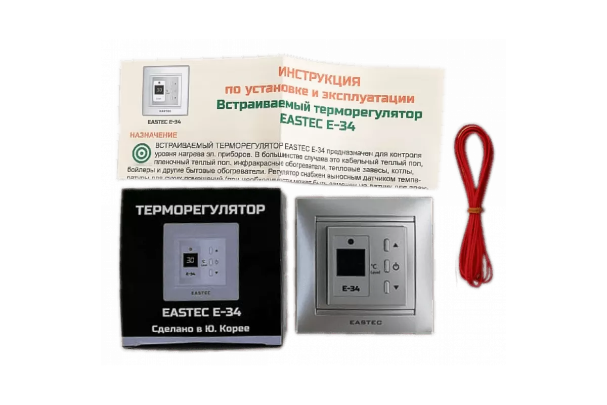 Терморегулятор оснащен цифровым дисплеем и тонким чувствительным датчиком температуры пола, что обеспечивает точное поддержание заданной температуры. Устройство способно работать как с выносным датчиком, так и в пользовательском интервальном режиме включений/отключений, что повышает его универсальность. Кроме того, EASTEC E-34 имеет защиту от перепадов напряжения сети, что обеспечивает дополнительную безопасность. ​