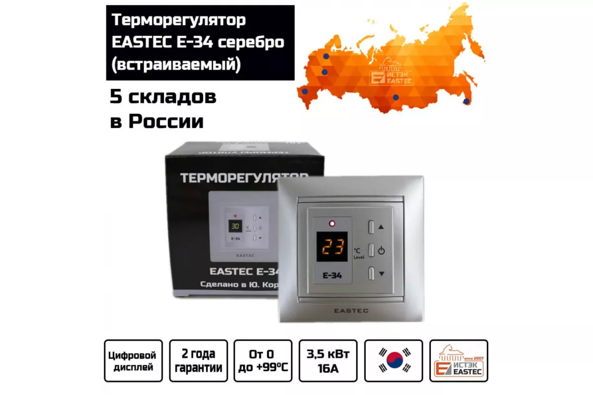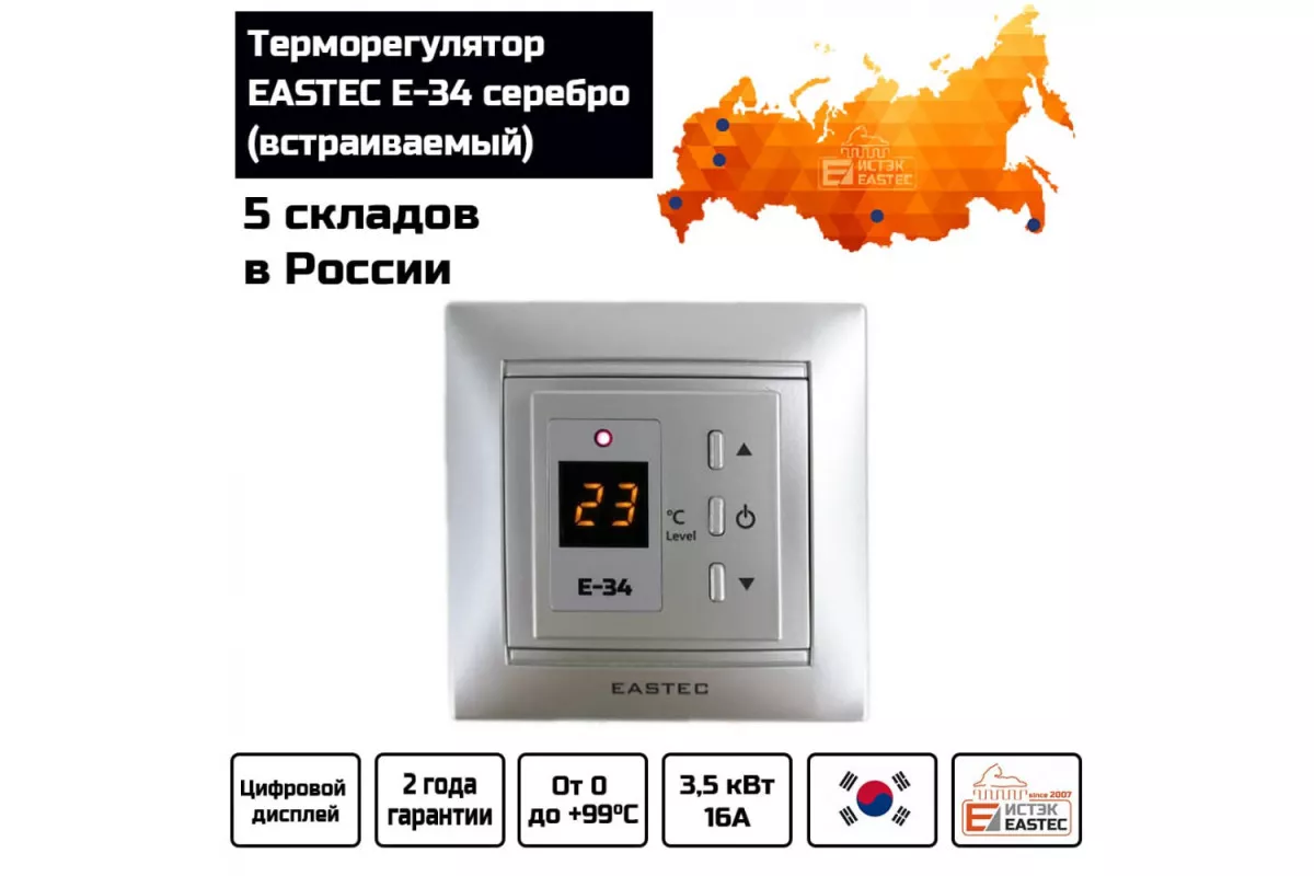 Терморегулятор EASTEC E-34 серебро (Встраиваемый 3,5 кВт)